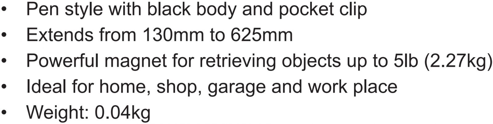| 1278231 תפסן מגנטי עם ידית טלסקופית - עד 2.50 ק''ג - DURATOOL D00273 | DURATOOL | תפסן מגנטי עם ידית טלסקופית - עד 2.50 ק''ג - DURATOOL D00273 ♦ קטן מימדים עם קליפס PEN STYL... כלי עבודה ידניים » שונות - כלי עבודה ידניים | כמות |