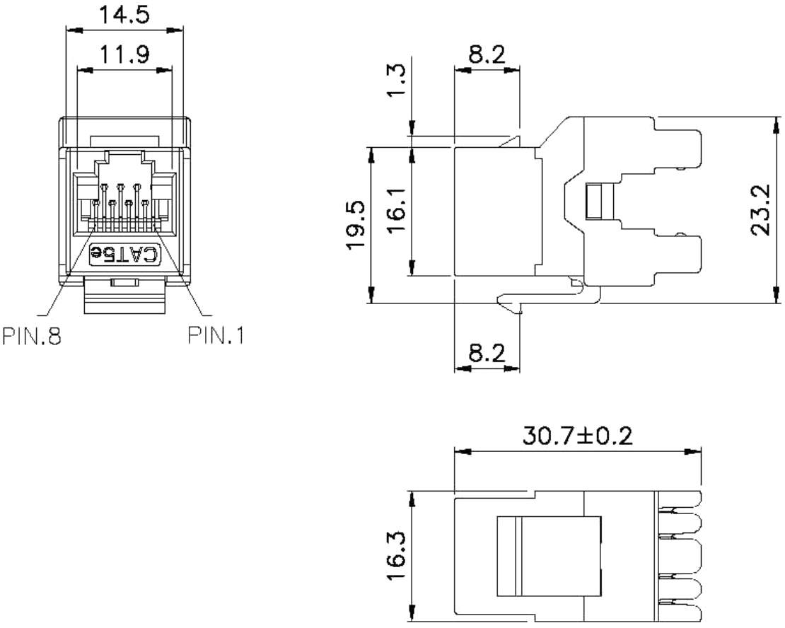 מחבר RJ45 8P8C - נקבה לנעיצה לפנל - CAT5E