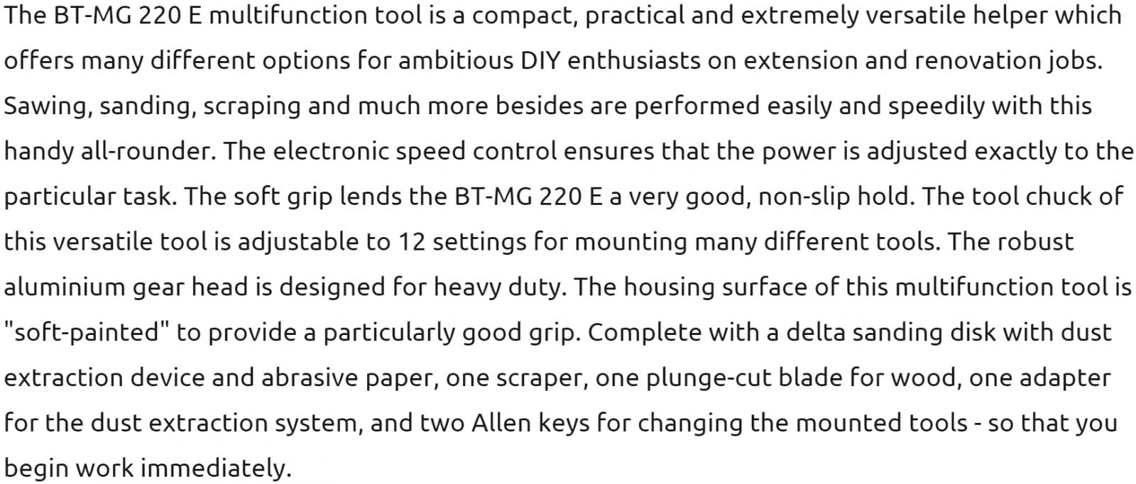 | 7709252 מולטיטול חשמלי מקצועי - EINHELL BT-MG 220 E - 220W | EINHELL | מולטיטול חשמלי מקצועי - EINHELL BT-MG 220 E - 220W ♦ הספק עבודה : 230W♦ ויסות ... כלי עבודה נטענים / חשמליים » מסורים וכלי חיתוך חשמליים | לא ניתן להזמין - אזל המלאי |