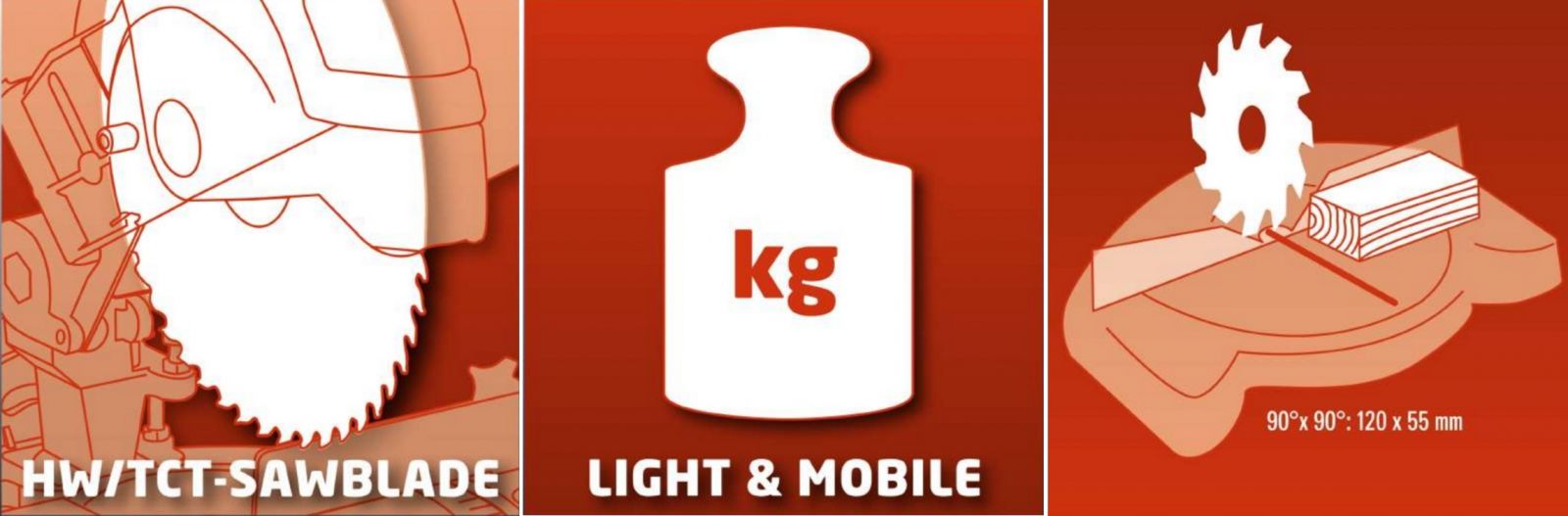 ♦ עומק חיתוך : 55 מ''מ בזוית 90° , 32 מ''מ בזוית 45°