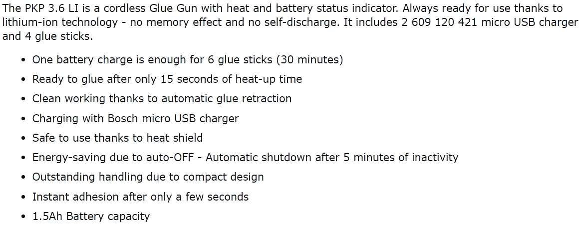 | 8209681 אקדח דבק חם מקצועי נטען - BOSCH PKP 3.6 LI | BOSCH | אקדח דבק חם מקצועי נטען - BOSCH PKP 3.6 LI ♦ בקרת טמפרטורה אלקטרונית♦ טמפרטורת התכה : 2... כלי עבודה נטענים / חשמליים » אקדחי דבק חם | כמות |
