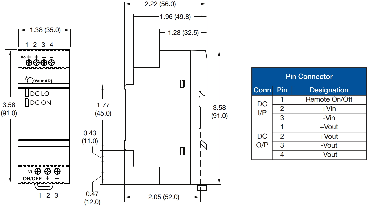 ספקי כוח, שנאים וממירי מתח » ממירי מתח - DC > DC » ממירי מתח DC > DC - יציאה אחת - (RAIL MOUNTING (DIN