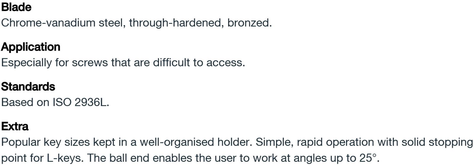 | 8019771 סט מפתחות אלן כדורי מ''מ - WIHA 369 H7 | WIHA | סט מפתחות אלן כדורי מ''מ - WIHA 369 H7 ♦ להבים איכותיים מפלדת כרום ונדיום♦ מאושר... כלי עבודה ידניים » מפתחות ובוקסות | כמות |