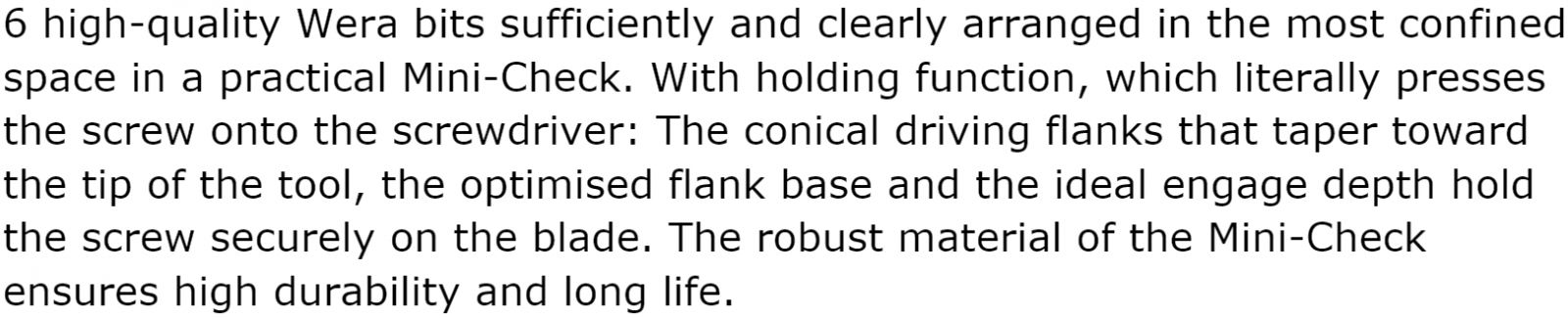 | 4173122 סט ביטים מקצועי - 6 יחידות - WERA MINI CHECK 50 MM TX | WERA | סט ביטים מקצועי - 6 יחידות - WERA MINI CHECK 50 MM TX HF VE 20 ♦ טכנולוגית HF לאחיזה מושלמת של הבור... כלי עבודה נטענים / חשמליים » מקדחים / ביטים / כרסמים | כמות |