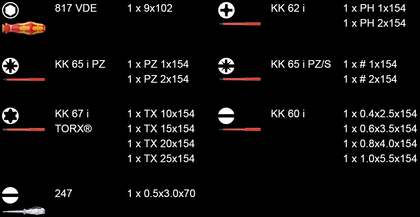 ידית מברג עם סט 14 ביטים - WERA KRAFTFORM VDE 60I/65I/67I/16