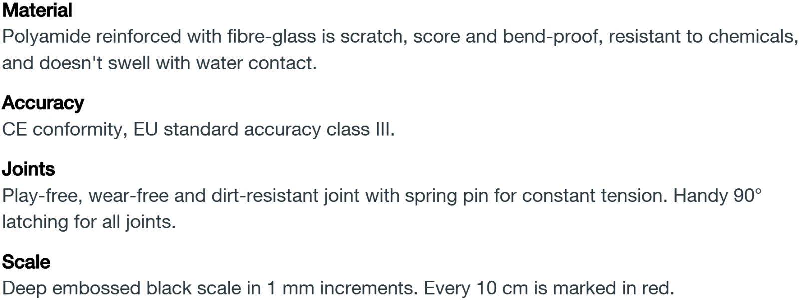 | 0463267 סרגל מתקפל מקצועי מפלסטיק - WIHA - 1000MM | WIHA | סרגל מתקפל מקצועי מפלסטיק - WIHA - 1000MM ♦ גוף מתרכובת פוליאמיד עם ציפוי פייברגלס♦ עמידות גבוהה ... כלי עבודה ידניים » כלי מדידה שונים | כמות |