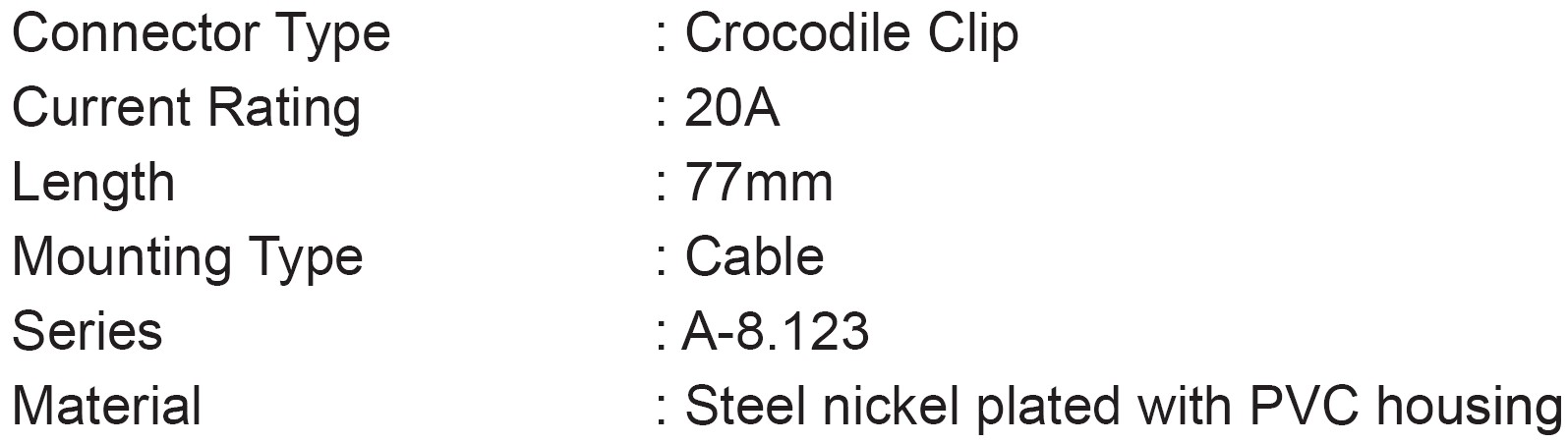 | 4109961 תנין מבודד 77MM - שחור | PRO-SIGNAL | תנין מבודד 77MM - שחור ♦ מגעים מפלדה בציפוי ניקל עם בידוד PVC♦ זרם מקסימלי : 2... קונקטורים, מחברים ומתאמים » מחברים ומתאמים למעבדות אלקטרוניקה | לא ניתן להזמין - אזל המלאי |