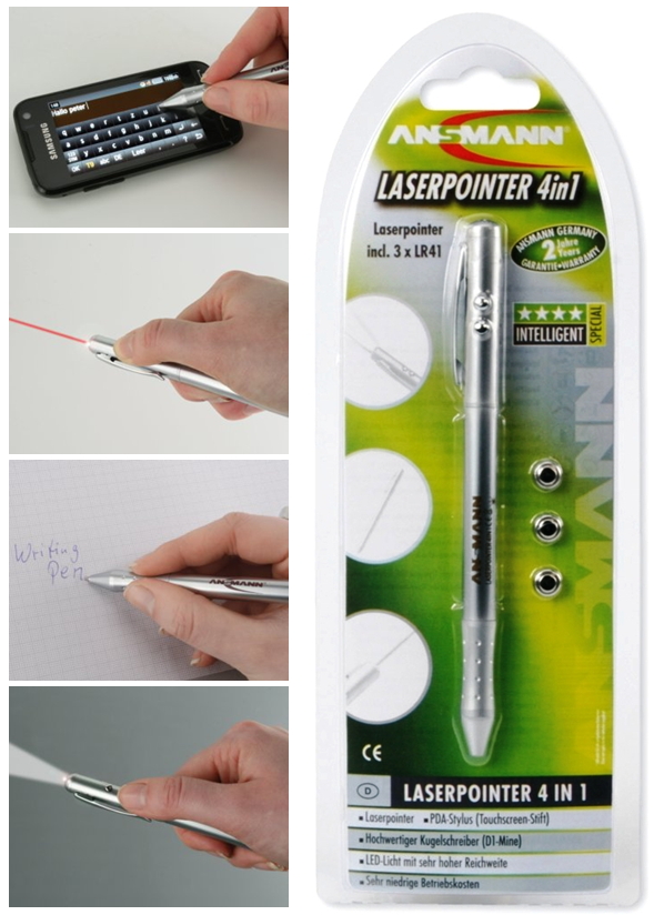 פנס עט משולב עם סמן לייזר - ANSMANN 4 IN 1