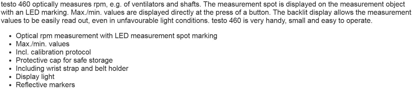 | 6931741 מודד מהירות סיבוב דיגיטלי (טכומטר) - TESTO 460 TACHOMETER | TESTO | מודד מהירות סיבוב דיגיטלי (טכומטר) - TESTO 460 TACHOMETER ♦ תצוגת LCD גדולה ומוארת♦ טווח מדי... ציוד בדיקה ומכשירי מדידה » ציוד בדיקה - שונות | כמות |