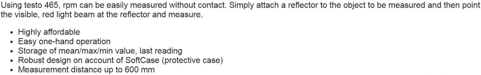 | 7404123 מודד מהירות סיבוב דיגיטלי (טכומטר) - TESTO 465 TACHOMETER | TESTO | מודד מהירות סיבוב דיגיטלי (טכומטר) - TESTO 465 TACHOMETER ♦ תצוגת LCD גדולה ומוארת♦ טווח מדידה : ... ציוד בדיקה ומכשירי מדידה » ציוד בדיקה - שונות | כמות |