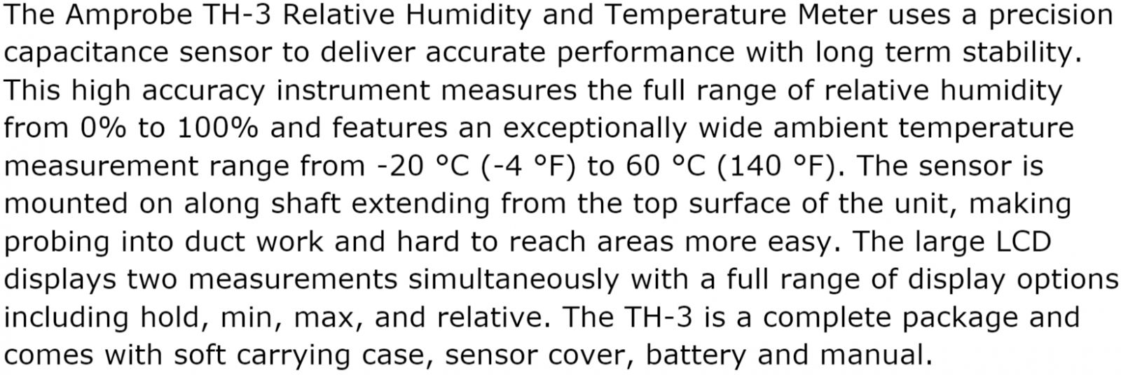 | 6746641 מודד טמפרטורה ולחות ידני דיגיטלי - BEHA AMPROBE TH-3 | BEHA-AMPROBE | מודד טמפרטורה ולחות ידני דיגיטלי - BEHA AMPROBE TH-3 ♦ תצוגת LCD DUAL DISPLAY♦ טווח מדידה : 20&or... ציוד בדיקה ומכשירי מדידה » מודדי טמפרטורה ולחות | כמות |