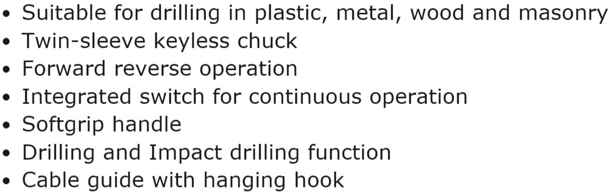 | 5395481 מקדחה חשמלית BOSCH PSB 500RE - 500W | BOSCH | מקדחה חשמלית BOSCH PSB 500RE - 500W ♦ הספק עבודה : 500W♦ מהירות סיבוב : 0-3000... כלי עבודה נטענים / חשמליים » מברגות / מקדחות / פטישונים | לא ניתן להזמין - אזל המלאי |