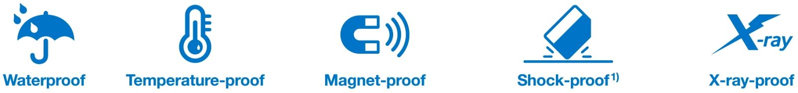♦ הגנה מפני רטיבות , זעזועים , מגנטיות ו X-RAY