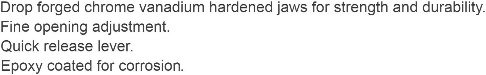 | 7159142 מפתח פלייר פטנט מקצועי - CK TOOLS T3630 10 - 250MM | CK TOOLS | מפתח פלייר פטנט מקצועי - CK TOOLS T3630 10 - 250MM שפתיים שטוחות עם מפתח עד 50 מ''מ... כלי עבודה ידניים » מפתחות ובוקסות | כמות | |