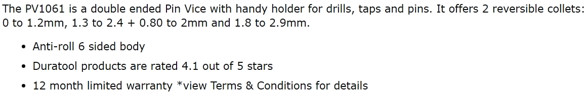 | 5346281 מיני מקדחה ידנית דו כיוונית - MODELCRAFT PV1061 | MODELCRAFT | מיני מקדחה ידנית דו כיוונית - MODELCRAFT PV1061 ♦ תפס דו כיווני לצירים : 0MM ~ 1.2MM , 1.3MM ~2.4MM... כלי עבודה ידניים » שונות - כלי עבודה ידניים | כמות |