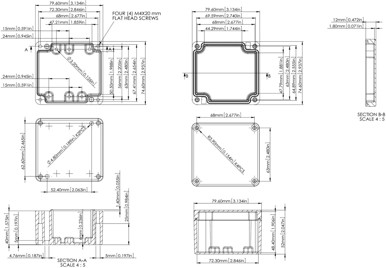 קופסת זיווד ממתכת - G1XXB SERIES - 79.6X74.6X52MM