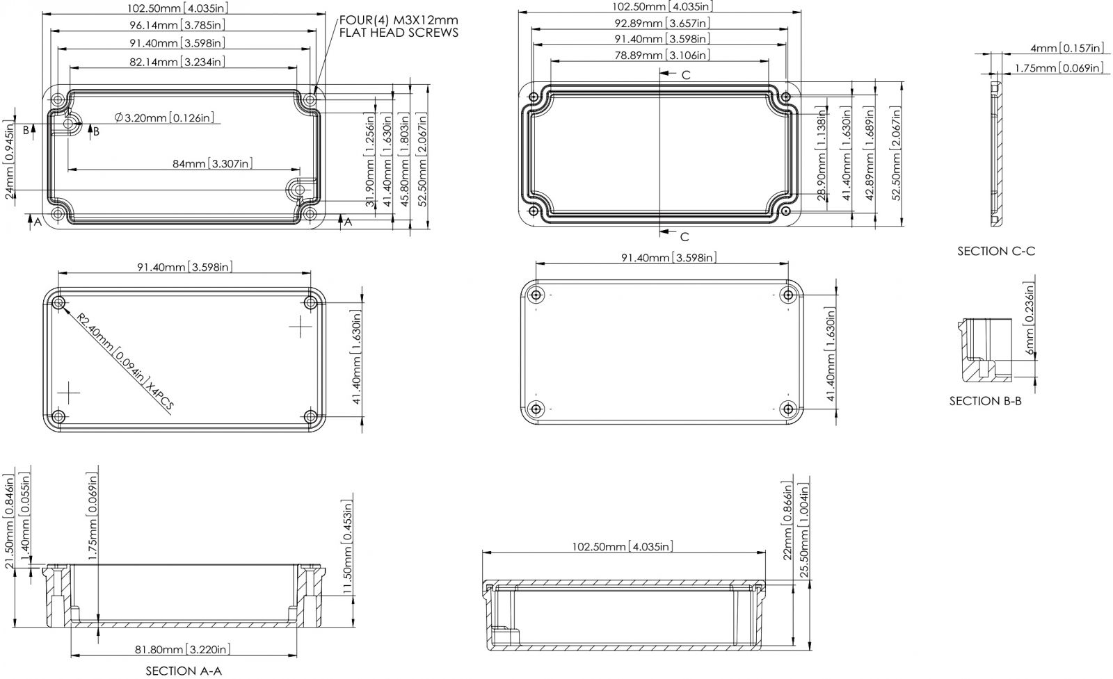 קופסת זיווד ממתכת - G1XXG SERIES - 102X52.5X25.5MM