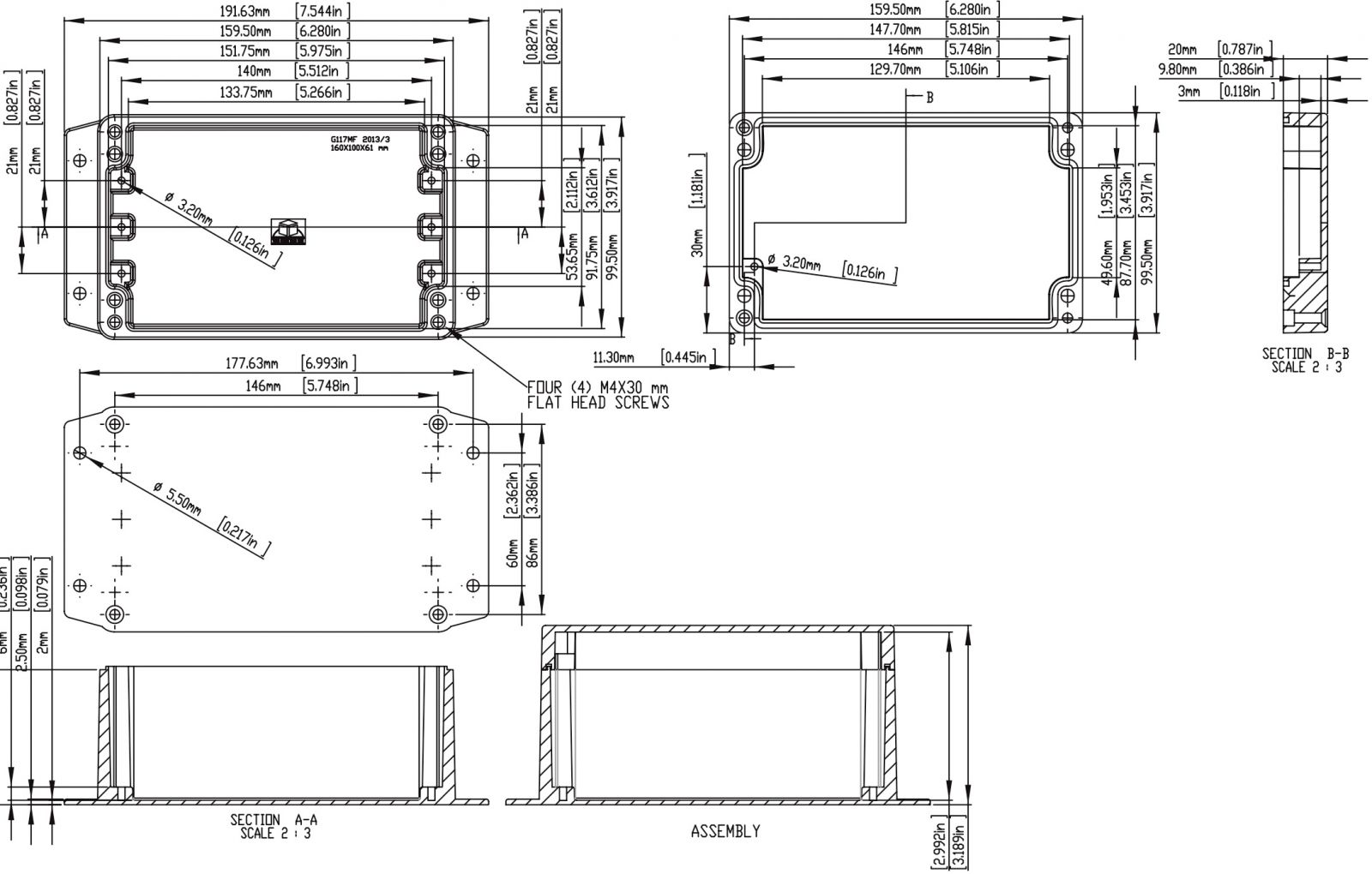 קופסת זיווד ממתכת - G1XXMFG SERIES - 160X100X81MM