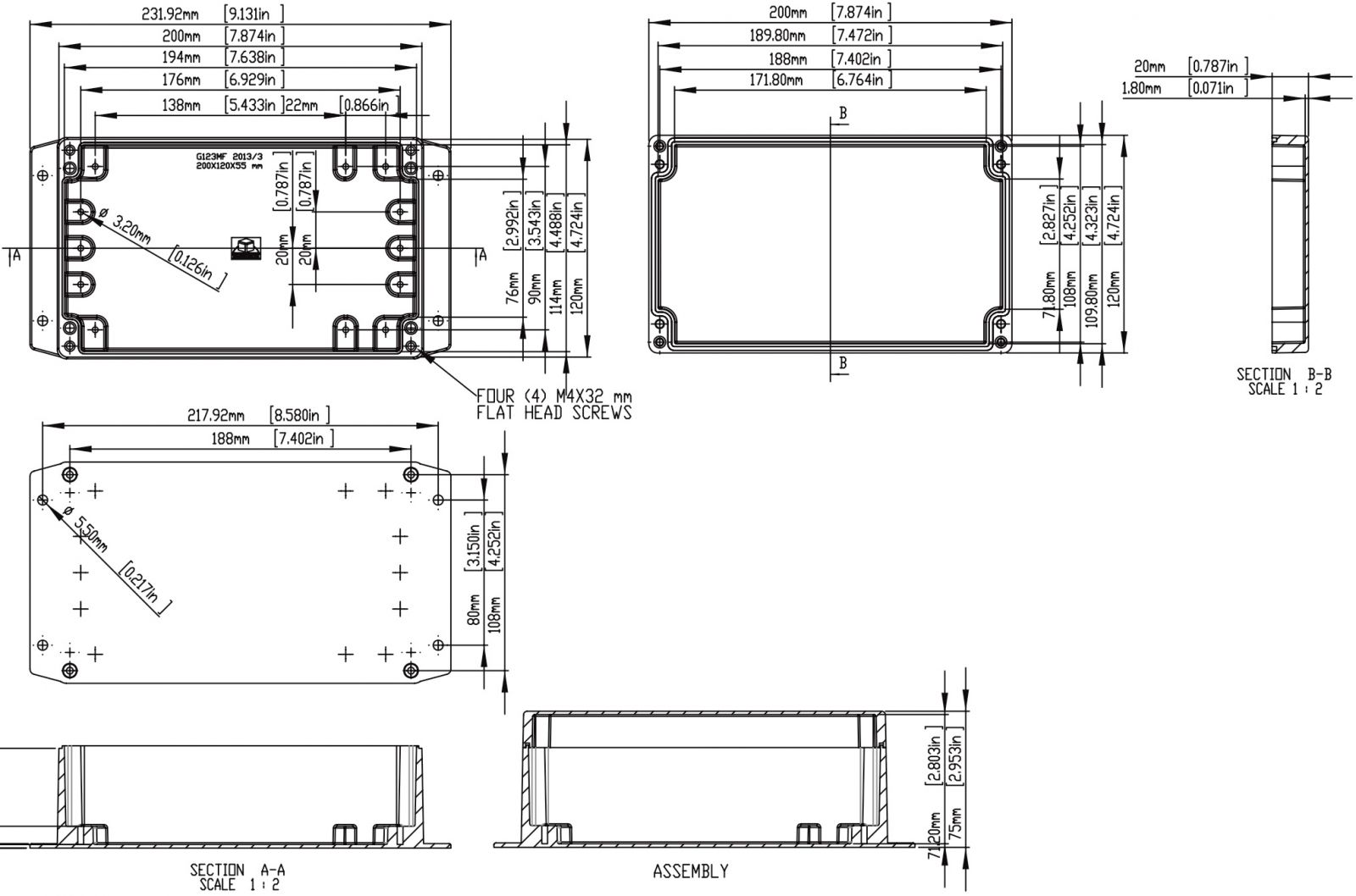 קופסת זיווד ממתכת - G1XXMFG SERIES - 200X120X75MM