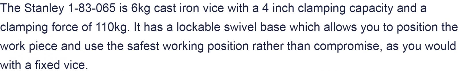 | 4286651 מלחציים מסתובבות ''4 לשולחן מפלדה מחושלת - STANLEY 83-065 | STANLEY | מלחציים מסתובבות ''4 לשולחן מפלדה מחושלת - STANLEY 83-065 ♦ בסיס מסתובב 360 מעלות עם נעילה ... כלי עבודה ידניים » מלחציים , קליבות וסדנים | כמות |