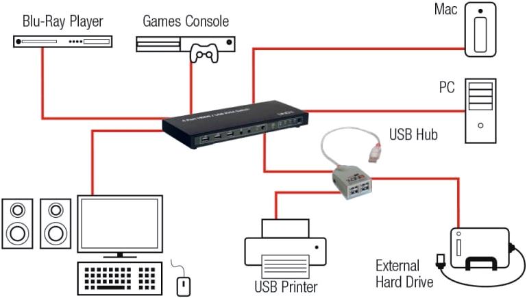 ממתג אקטיבי KVM לארבעה מחשבים - USB / HDMI / AUDIO