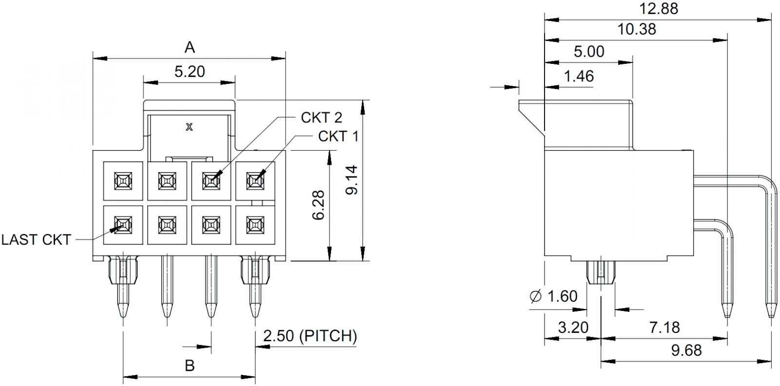 ♦ סוג מחבר : RIGHT ANGLE HEADER DUAL ROW