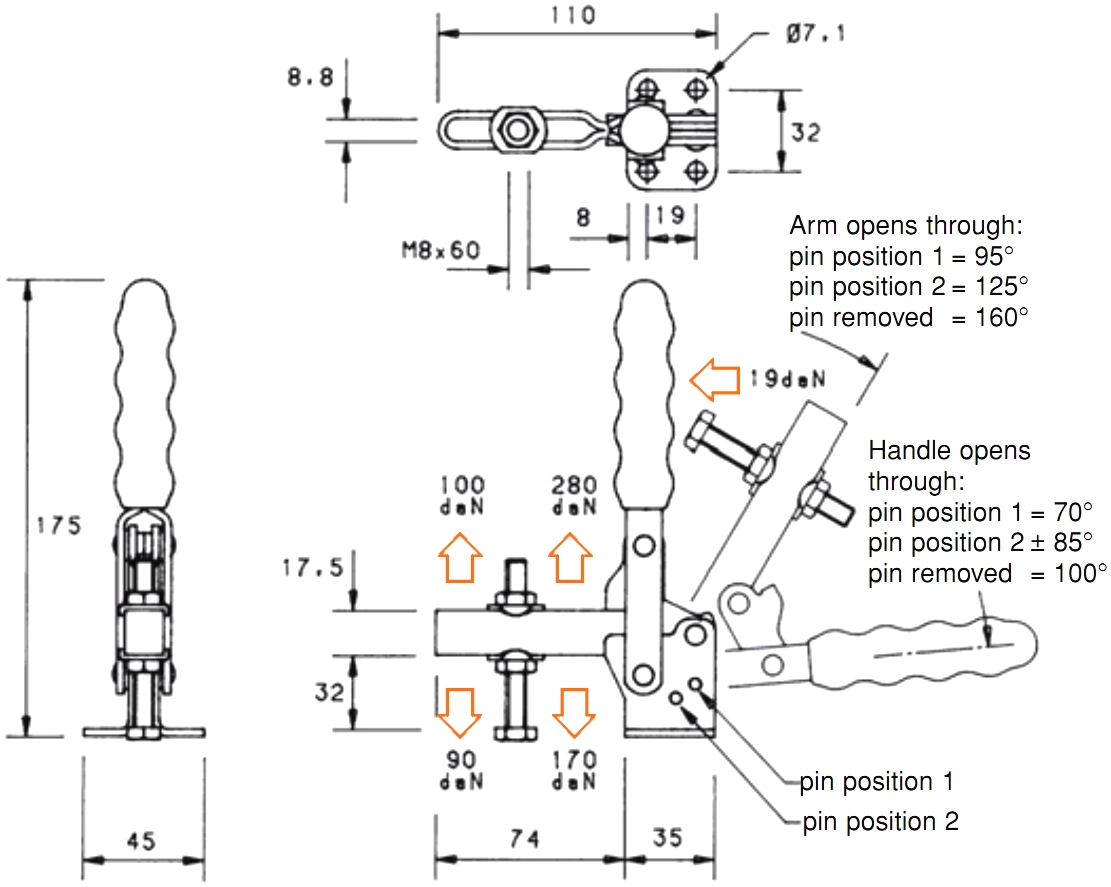 מלחצי קליבה - V250/2B - TOGGLE CLAMP - VERTICAL