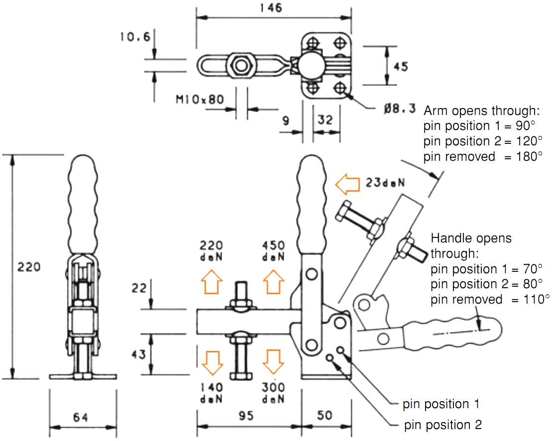מלחצי קליבה - V350/2B - TOGGLE CLAMP - VERTICAL