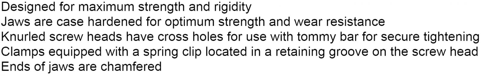 | 4535527 מלחצי קליבה - TOOLMAKERS PARALLEL CLAMPS | DURATOOL | מלחצי קליבה - TOOLMAKERS PARALLEL CLAMPS ♦ שפתיים מפלדה מוקשחת חזקה במיוחד♦ אורך השפתיים... כלי עבודה ידניים » מלחציים , קליבות וסדנים | כמות |