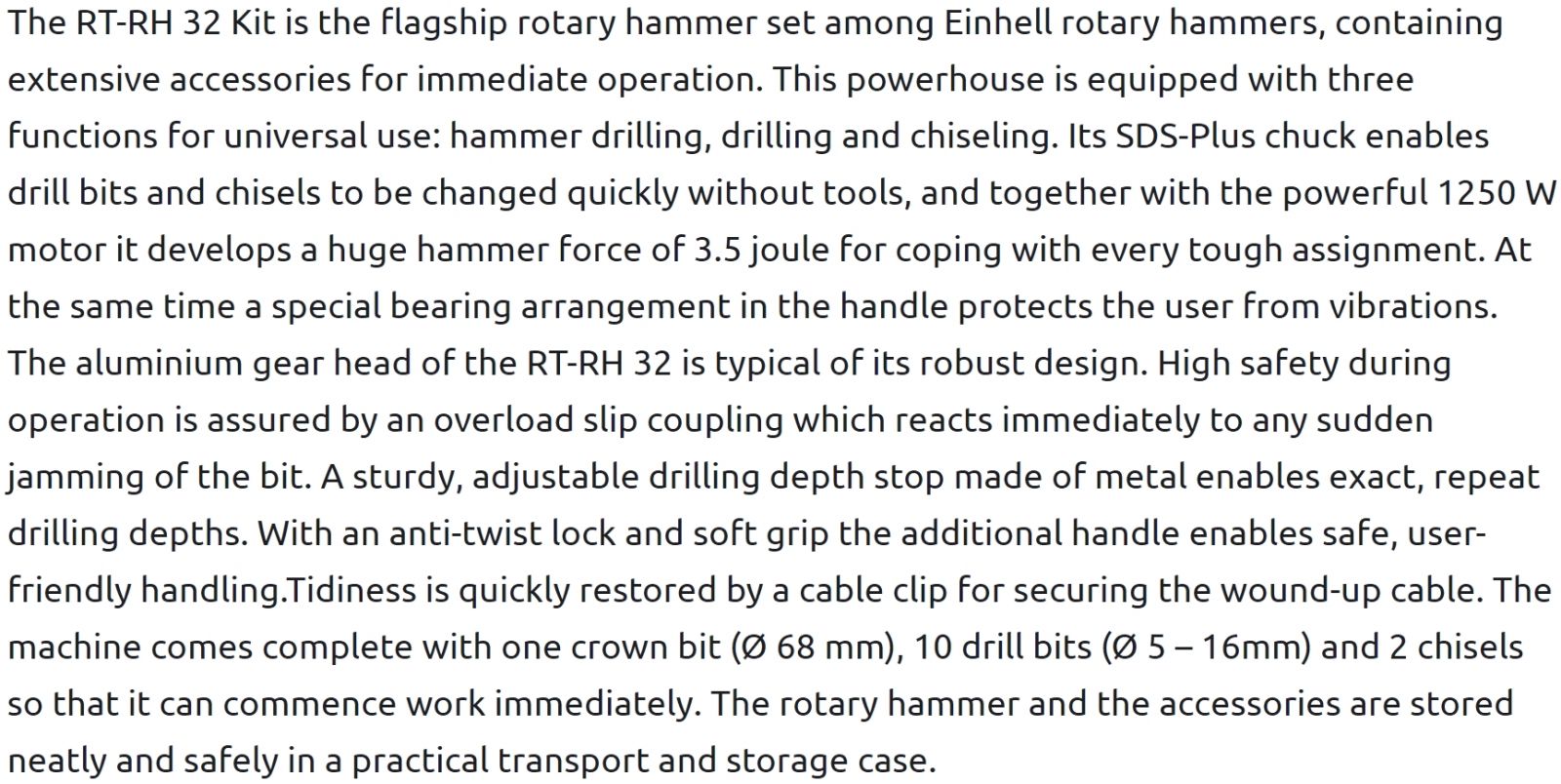 | 4289762 מקדחה חשמלית מקצועית רוטטת EINHELL RT-RH 32 - 1250W | EINHELL | מקדחה חשמלית מקצועית רוטטת EINHELL RT-RH 32 - 1250W ♦ הספק עבודה : 1250W♦ מהירות סיבוב ... כלי עבודה נטענים / חשמליים » מברגות / מקדחות / פטישונים | לא ניתן להזמין - אזל המלאי |
