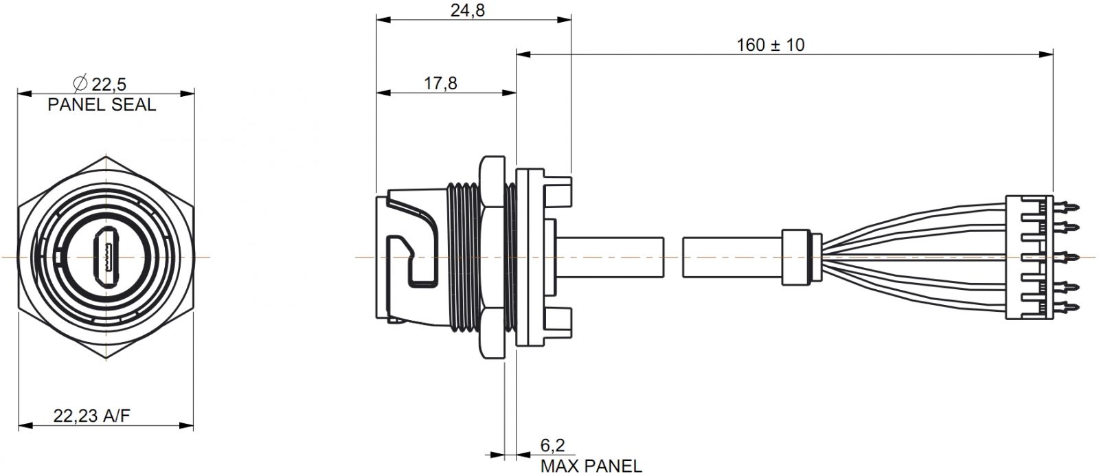 כבל תעשייתי USB - נקבה MICRO B ← זכר PXP4043/B - MOLEX