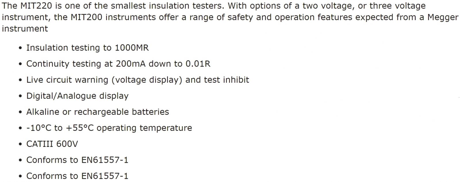 | 7126801 מודד בידוד / רציפות דיגיטלי - MEGGER MIT220 - 250V ~ 500V | MEGGER | מודד בידוד / רציפות דיגיטלי - MEGGER MIT220 - 250V ~ 500V ♦ בדיקת בידוד מהירה וקלה עד 1000Mohms♦ ... ציוד בדיקה ומכשירי מדידה » ציוד בדיקה לחשמלאים | כמות |