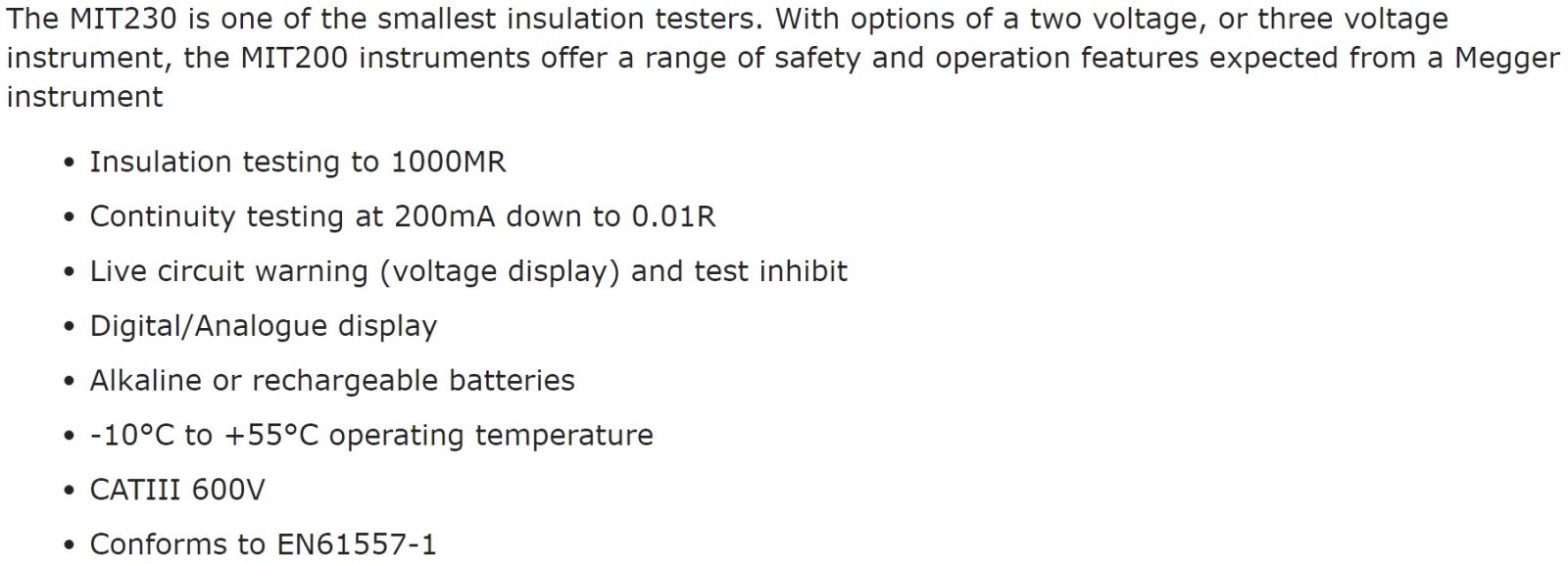 | 8126801 מודד בידוד / רציפות דיגיטלי - MEGGER MIT230 - 250V ~ 1000V | MEGGER | מודד בידוד / רציפות דיגיטלי - MEGGER MIT230 - 250V ~ 1000V ♦ בדיקת בידוד מהירה וקלה עד 1000Mohms... ציוד בדיקה ומכשירי מדידה » ציוד בדיקה לחשמלאים | לא ניתן להזמין - אזל המלאי |