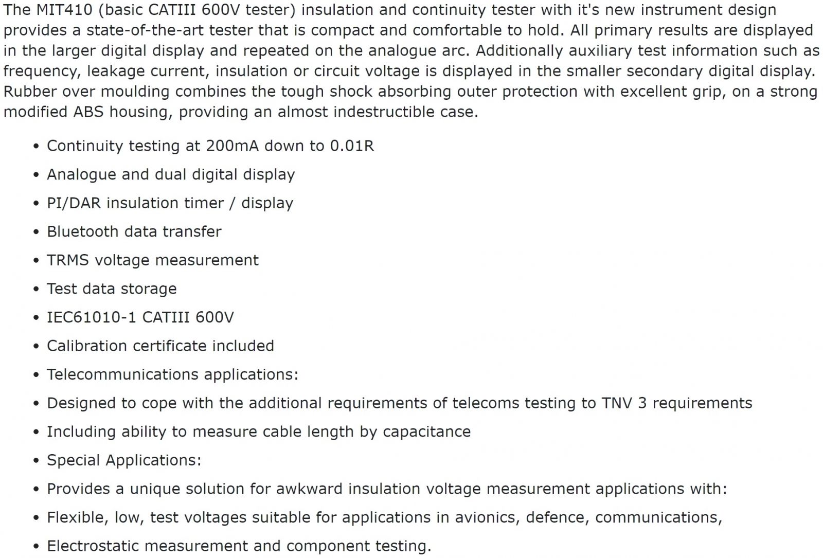 | 10740NI מודד בידוד / התנגדות / רציפות דיגיטלי - MEGGER MIT410 - 50V ~ 1000V | MEGGER | מודד בידוד / התנגדות / רציפות דיגיטלי - MEGGER MIT410 - 50V ~ 1000V ♦ תצוגת LCD דיגיטלית מוארת גדולה... ציוד בדיקה ומכשירי מדידה » ציוד בדיקה לחשמלאים | כמות |