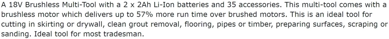 | 39881LT מולטיטול נטען מקצועי - DEWALT DCS355D2 KIT - 18V | DEWALT | מולטיטול נטען מקצועי - DEWALT DCS355D2 KIT - 18V ♦ מתח עבודה : 18V♦ זווית תנודה : 1... כלי עבודה נטענים / חשמליים » מסורים וכלי חיתוך חשמליים | לא ניתן להזמין - אזל המלאי |