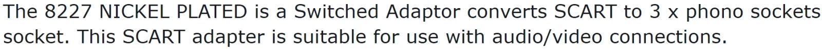 | 0750624 מתאם - SCART ~ 3XRCA+S-VIDEO IN/OUT | PRO-SIGNAL | מתאם - SCART ~ 3XRCA+S-VIDEO IN/OUT ♦ מגעים מנחושת עם ציפוי ניקל♦ מפסק הזזה IN/OUT... קונקטורים, מחברים ומתאמים » מחברים ומתאמים - אודיו / וידאו | כמות |