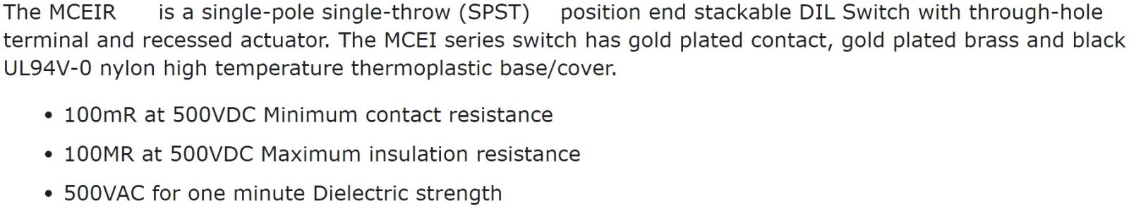 MULTICOMP THROUGH HOLE DIP SWITHCES - EI SERIES MULTICOMP THROUGH HOLE DIP SWITHCES - EI SERIES