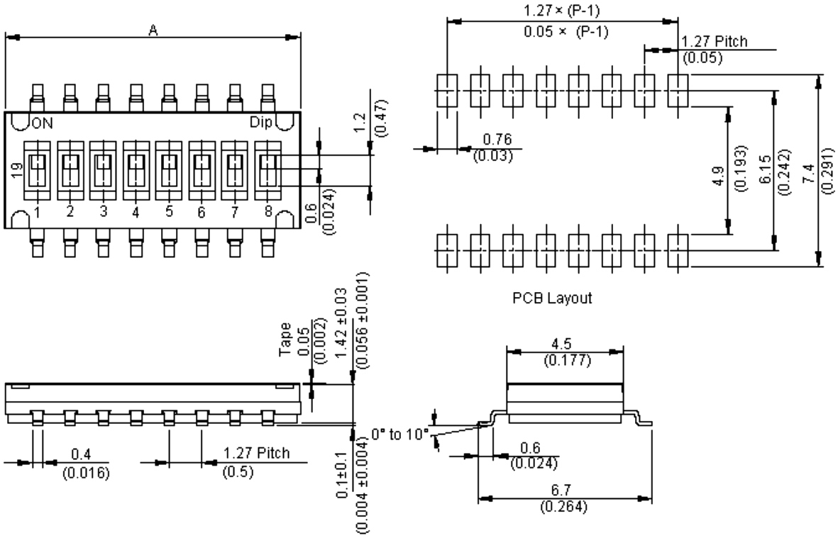 ♦ סוג המפסק : DIP SWITCH SPST SURFACE MOUNT