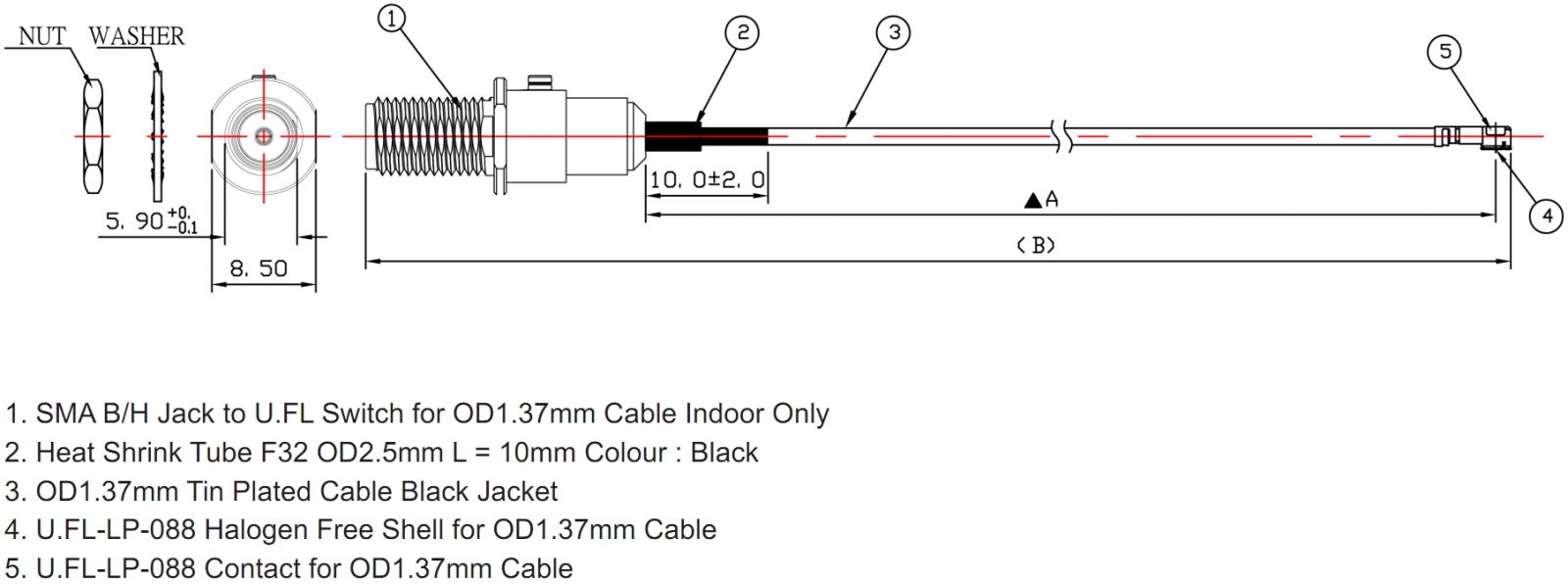 כבל קואקסיאלי שחור - SMA SW (F-B/H) ~ U.FL (M-R/A) - 100MM MULTICOMP ועוד כבלים ואביזרים לכבלים. לחצו למיפרט טכני מלא. צרו קשר לייעוץ מקצועי: 04-8520233