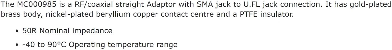 | 6515742 מתאם קואקסיאלי - SMA SOCKET - U.FL SOCKET | MULTICOMP | מתאם קואקסיאלי - SMA SOCKET - U.FL SOCKET ♦ מגעים מנחושת עם ציפוי זהב♦ התנגדות פנימית : 50R&dia... קונקטורים, מחברים ומתאמים » מחברים ומתאמים קואקסיאליים | לא ניתן להזמין - אזל המלאי |