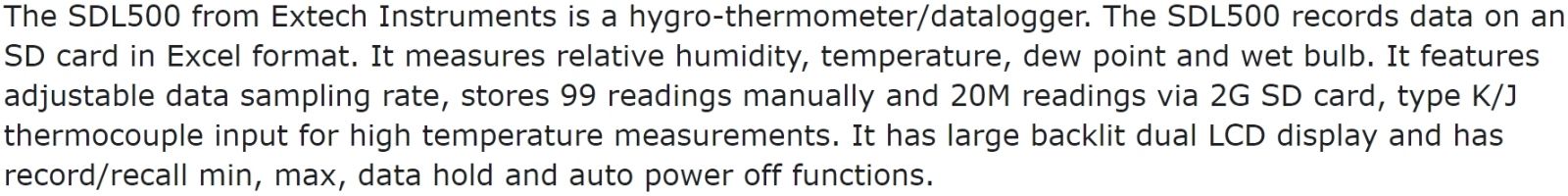 EXTECH INSTRUMENTS HYGRO THERMOMETER & DATALOGGER - SDL500 EXTECH INSTRUMENTS HYGRO THERMOMETER & DATALOGGER - SDL500