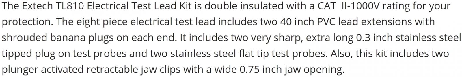 | 3747961 כבלים לרב מודד - סט חשמלאים מקצועי - EXTECH TL810 | EXTECH INSTRUMENTS | כבלים לרב מודד - סט חשמלאים מקצועי - EXTECH TL810 ♦ סוג חיבור : 4MM זויתי♦ חוטים גמישים... ציוד בדיקה ומכשירי מדידה » רבי מודדים וצבתות זרם | לא ניתן להזמין - אזל המלאי |