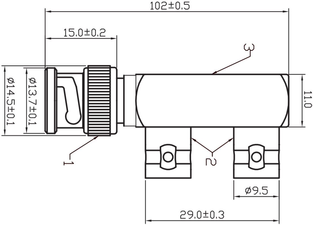 מתאם קואקסיאלי - BNC PLUG - 2XBNC SIDE SOCKETS