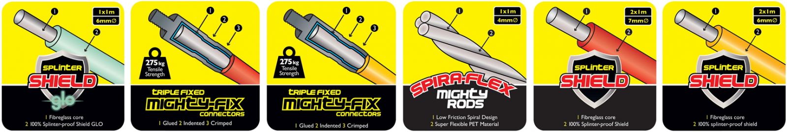 ♦ מוטות בקוטר 4 מ''מ , 6 מ''מ ו 7 מ''מ עם ציפוי פיברגלס בעל גמישות מותאמת