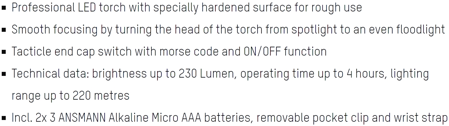 | 0686272 פנס ידני מקצועי - ANSMANN AGENT 1.2F - 230 LUMENS | ANSMANN | פנס ידני מקצועי - ANSMANN AGENT 1.2F - 230 LUMENS ♦ סוג תאורה : 3W CREE LED♦ עוצמת תאורה : 2... נורות , פנסים ומוצרי תאורה » פנסים | לא ניתן להזמין - אזל המלאי |