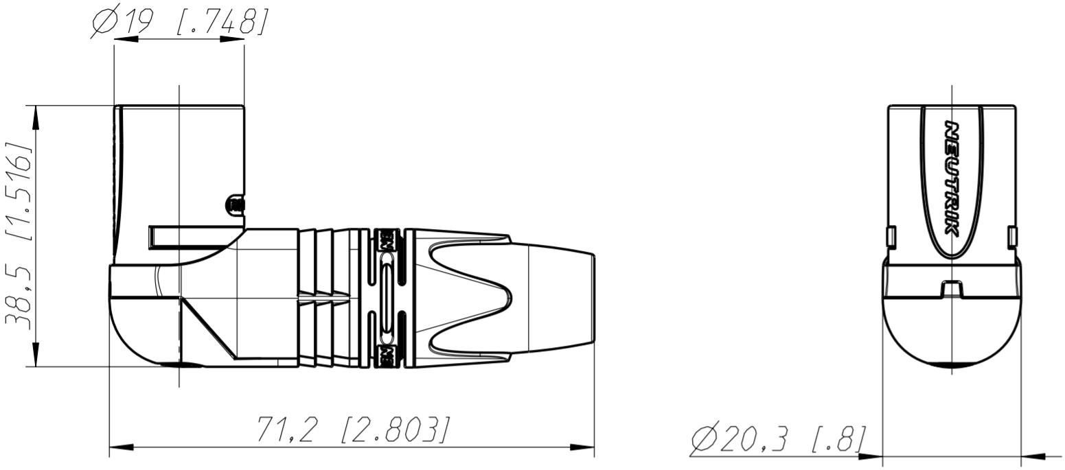 מחבר XLR זכר זוויתי להלחמה לכבל - 10 מגעים - NEUTRIK