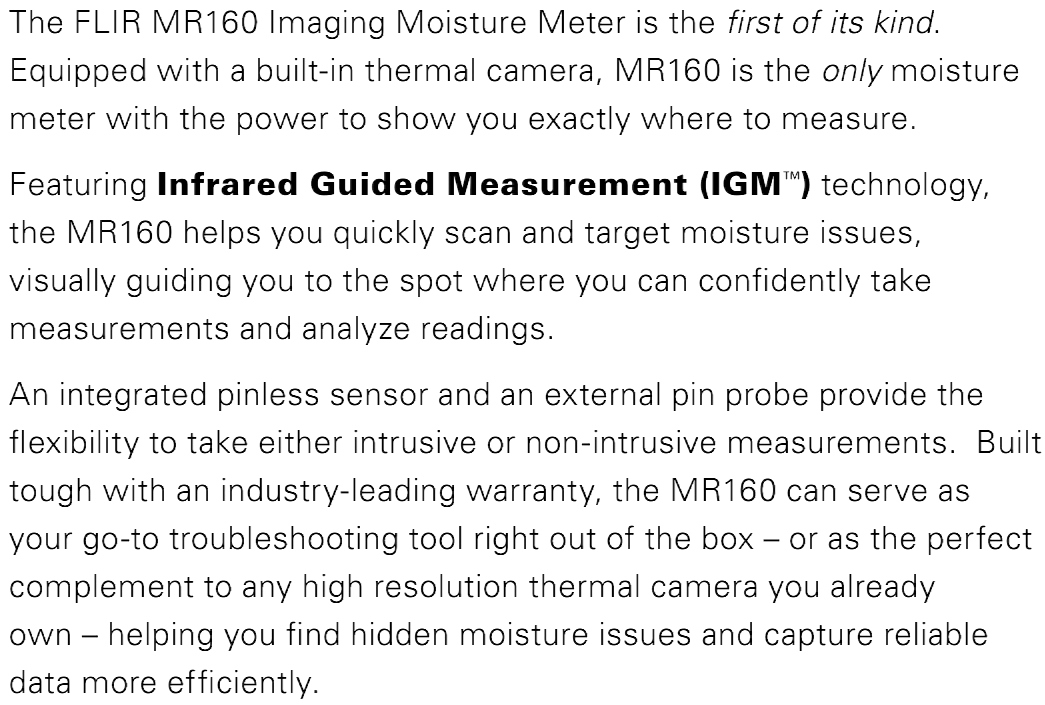 | 6821162 מודד לחות משולב מצלמה תרמית - FLIR MR160 | FLIR SYSTEMS | מודד לחות משולב מצלמה תרמית - FLIR MR160 למפרט מלא לחץ כאן ... ציוד בדיקה ומכשירי מדידה » מצלמות תרמיות | כמות |