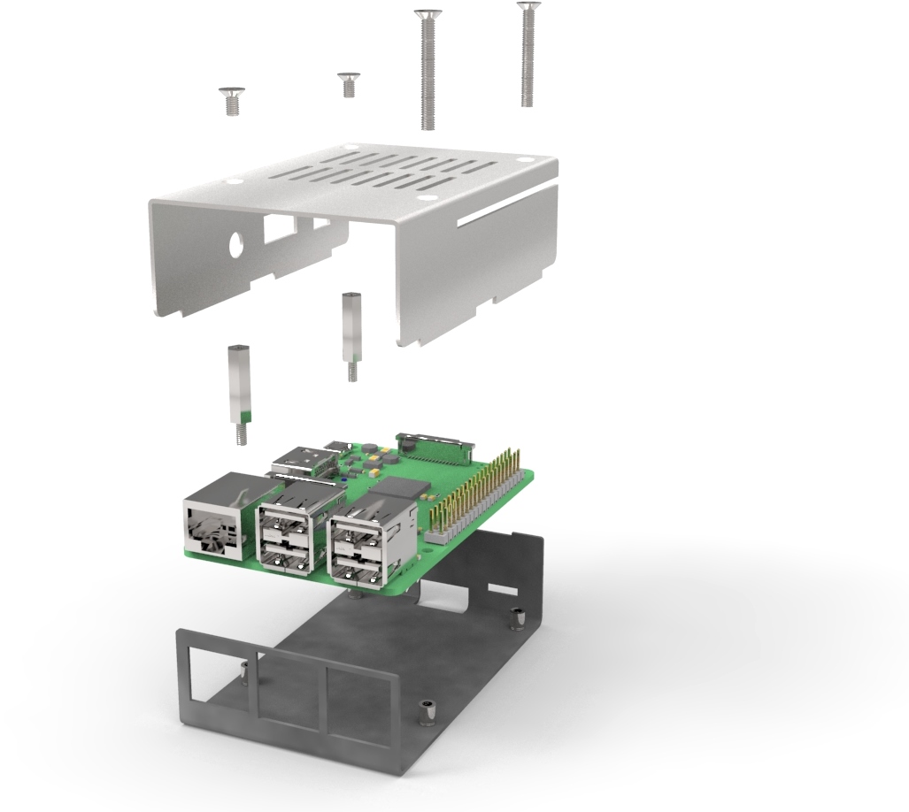 קופסת זיווד METAL CASE שחורה עבור RASPBERRY PI 3