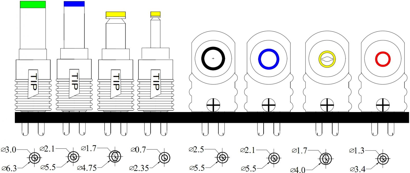 ♦ מסופק עם שמונה תקעי DC במידות שונות