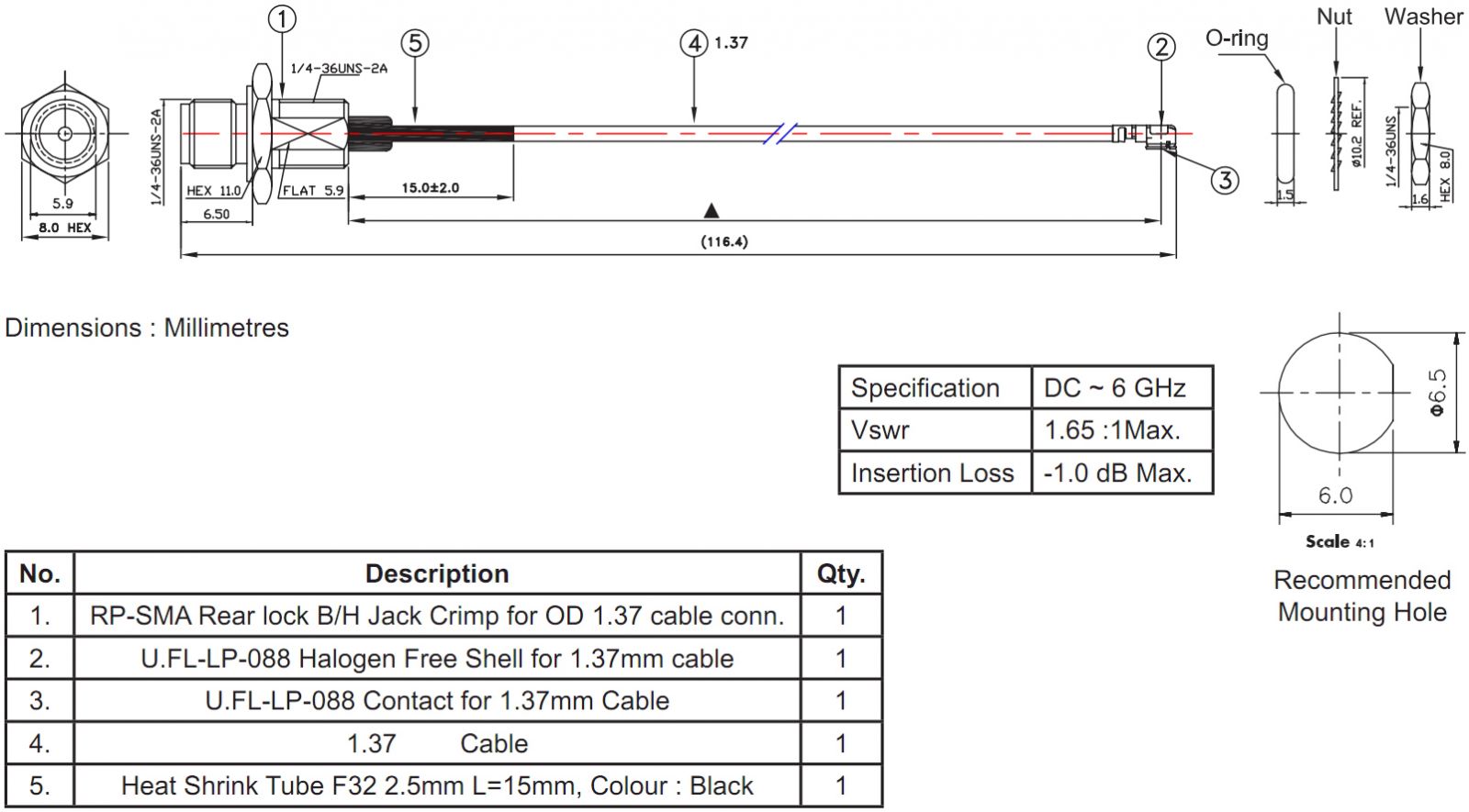 ♦ טווח תדרים DC : עד 6GHZ
